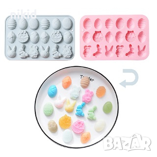 различни яйца яйце заек зайче кошница силиконов молд форма фондан шоколадови бонбони великденски → Обява 36125419