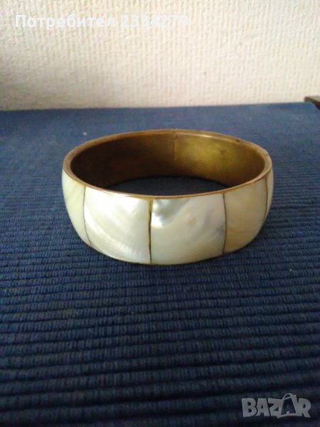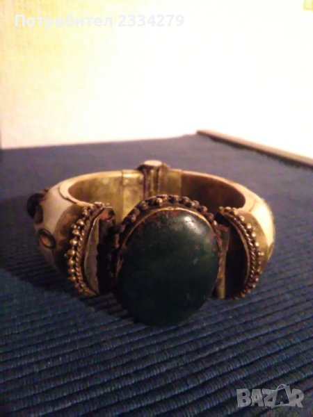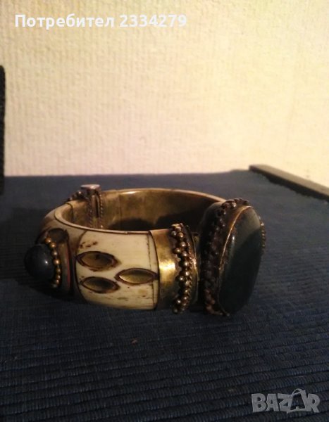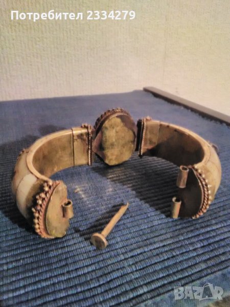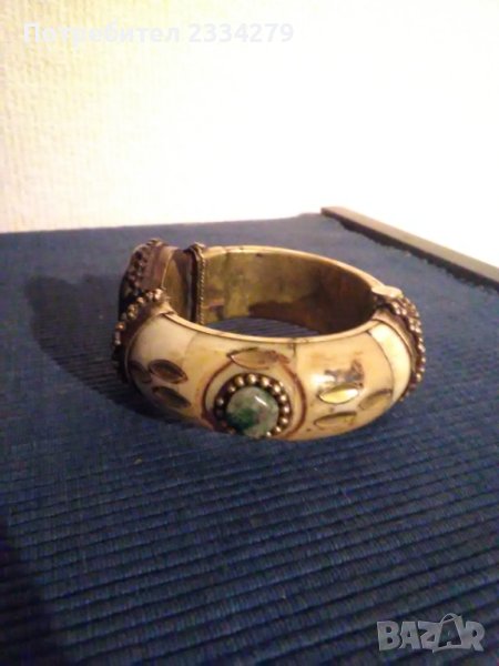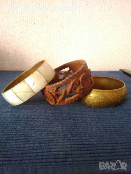 Фигурално орнаментирана,ръчно изработена стара гривна. Бронзов материал,,пиринче"цена: 3€., декорация към битова и друга дреха. Другата гривна е ръчна изработка,дърворезба с цена 7€. Третата е седефена от 70-те,ръчна изработка,цена 7€. Гривна авторска ръчна изработка от 70-те години ,,СБХ". Изработена е от естествена кост,3 камъка и накован седеф, цветен метал,свързва се с бронзов нит, цена 11€.
