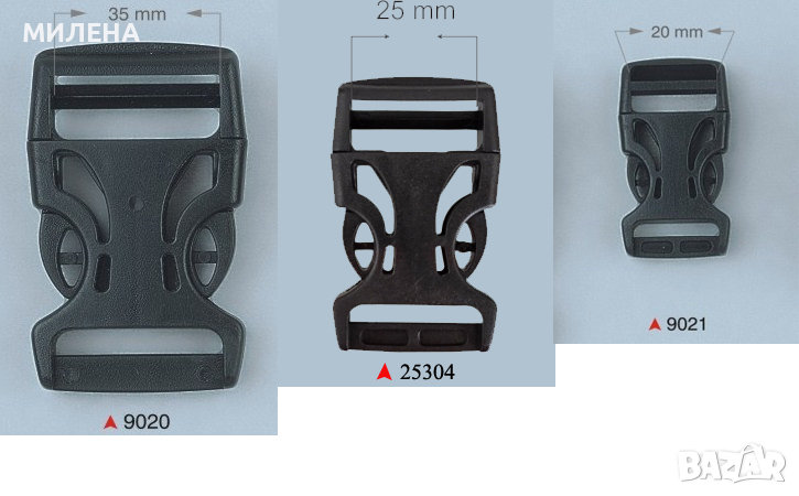 Използват се в изработването на колани, пътни чанти, раници, гривни и други. Те са функционални елементи в туристическото оборудване и облеклото. Цената е за брой с включено ДДС.