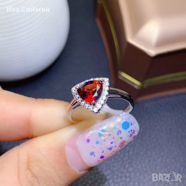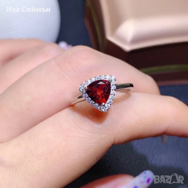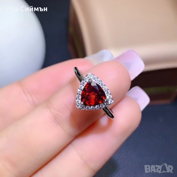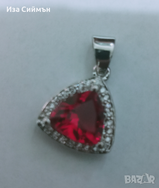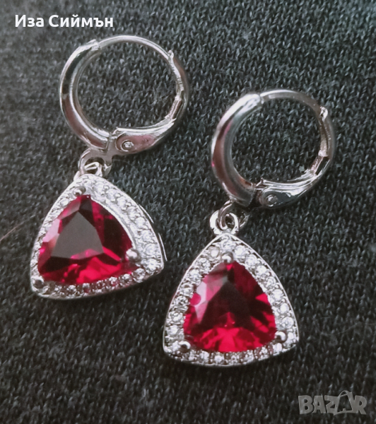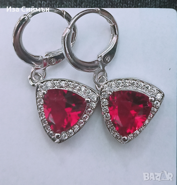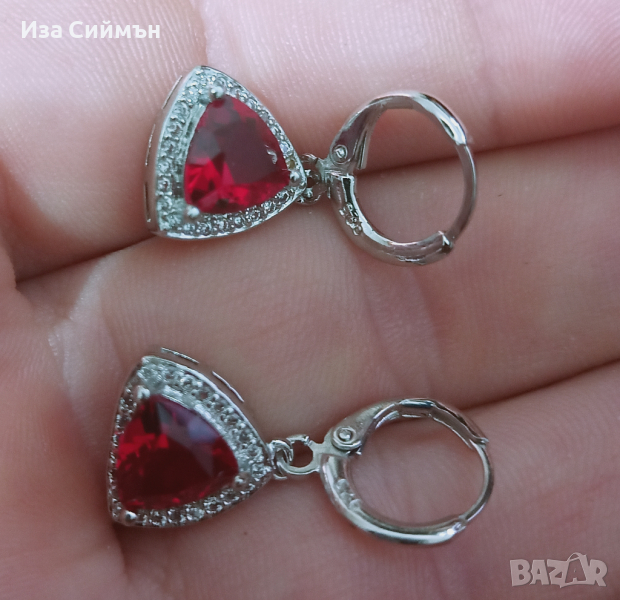 Сребърен комплект обици, пръстен и висулка с рубин → Обява 36128301