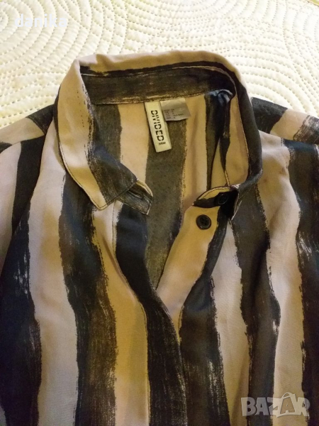 Красива дълга риза H&M размер S с по дълга задна част. Много нежна и елегантна. Странични цепки .Цветът е пепел от рози с черно . Подходяща и за плаж.