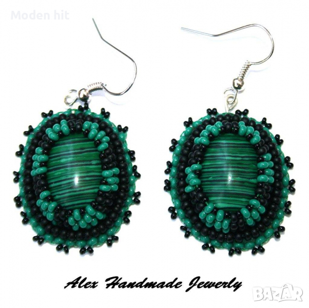 Комплект с малахит /бродерия с мъниста/. Ръчна изработка.