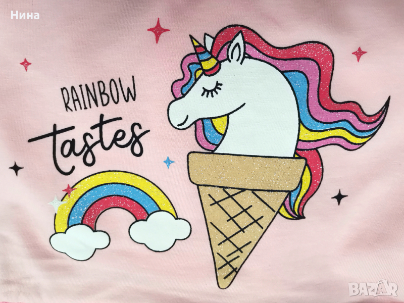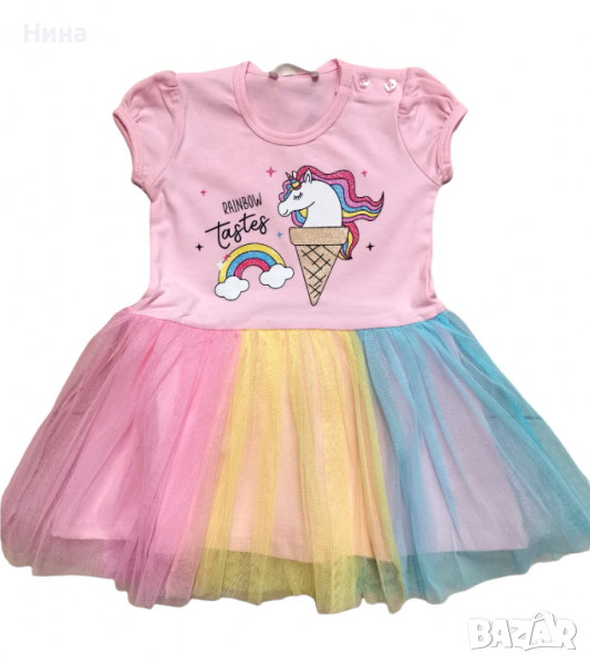 Прекрасница е тази рокля в розово, с любимата апликация 🦄 на еднорог. Размери: 92 см, 98 см и 110 см 🛍️ За още моделчета разгледайте и останалите обяви в профила ми.
