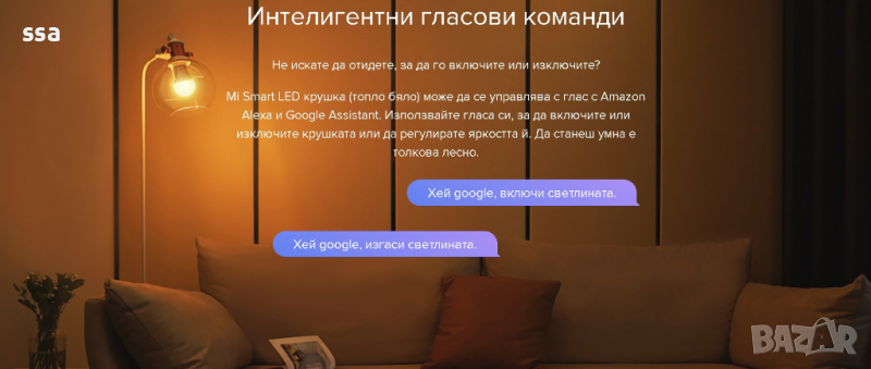 Mi Smart LED крушка може да се управлява с глас с Amazon Alexa и Google Assistant. Използвайте гласа си, за да включите или изключите крушката или да регулирате яркостта й.