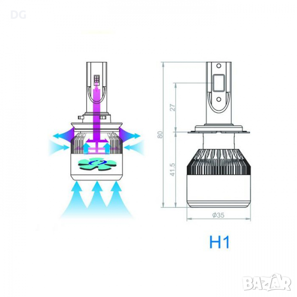 LED крушките са с COB ( chip-on-board) диод от ново поколение, монтиран върху алуминиев радиатор с вентилатор за по-добро охлаждане.