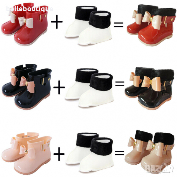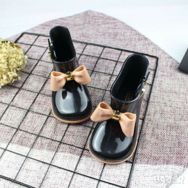 Уникални детски гумени ботуши за малка госпожица в черен цвят с прекрасна панделка. Изключително практични за дъждовно време. Прекрасно се съчетават с рокли и спортни дрехи.