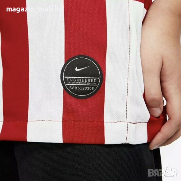 Детска тениска в червено-бял цвят носеща емблемата на FC Atletico Madrid. Изработена от 100 % полиестер, с Dry Fit технология е подходяща не само за стадиона, но и за ежедневието.