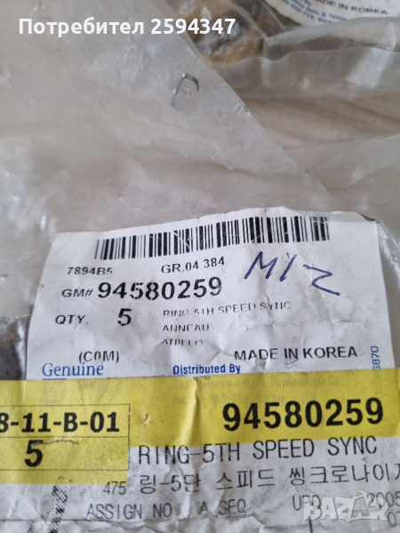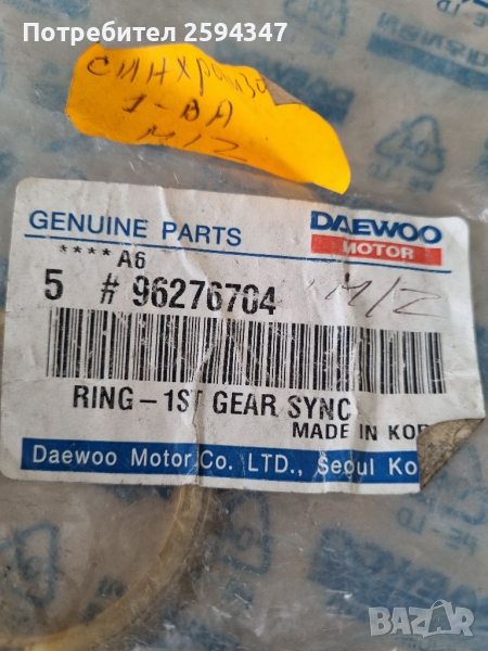 СИНХРОНИЗАТОРИ DAEWOO CHEVROLET MATIZ SPARK 96267762 94580259 96276704 GM ЦЕНА ЗА БРОЙ