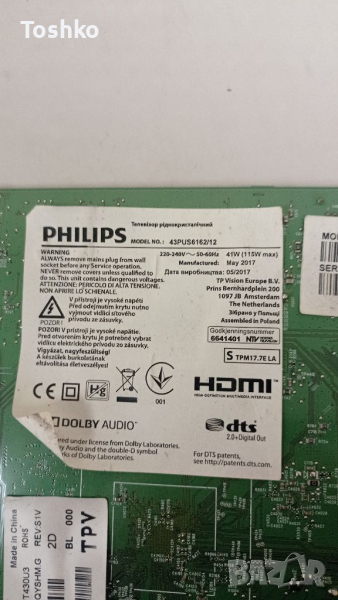 Проверен е работи за ТВ Philips 43PUS6162/12