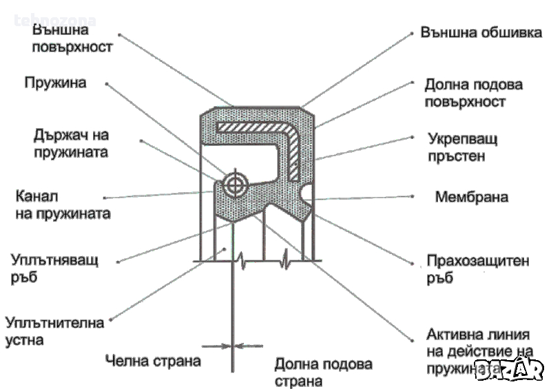 Уплътнителните пръстени за радиални валове, т.н. семеринги, служат за уплътняване в радиално направление. Семерингът е уплътнителен елемент, произведен от еластичен еластомерен материал с метална сърцевина, т.е. състоят се от метален укрепващ пръстен обвит от вулканизирана мембрана. В радиално действащият уплътнителен ръб е вложена допълнителна винтова пружина с пръстеновидна форма, която работи на опън.Уплътняването в статично и динамично състояние се осъществява посредством радиално притискане на уплътняващия ръб към вала и се дължи на по-малкия диаметър на уплътняващата устна. При семерингите необходимата радиална сила представлява сумата на тангентните сили на опъване и на огъване посредством пружината и еластомерната уплътнителна устна. Уплътняването в уплътнителния улей е в резултат на капилярни сили. Откъм статичната страна основата на канала се уплътнява от еластичната каучукова обвивка.
