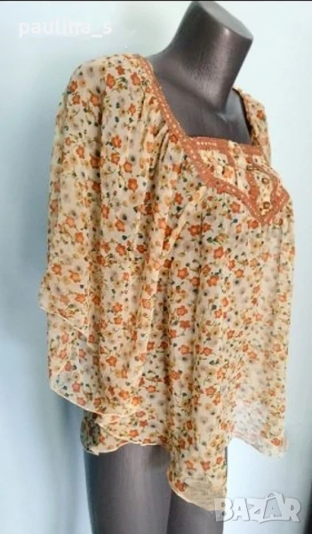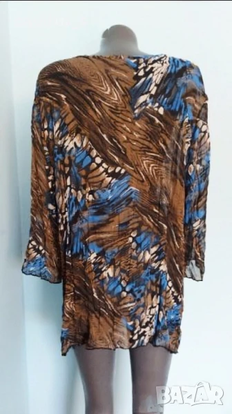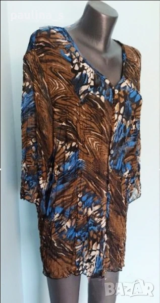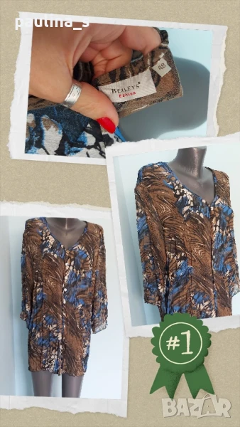 2️⃣. Колаж / XL / 3XL - Дизайнерска туника тип риза във флорален принт с турско синьо "Bexley's". Като нова. Цената е крайна 34,99лв. Много красива дизайнерска туника тип риза със седефени копчета и флорален принт с турско синьо. Материята е ефирен шифон с лека еластичност и намачкан ефект. Като нова без дефекти, една бройка е, става за посочените размери.