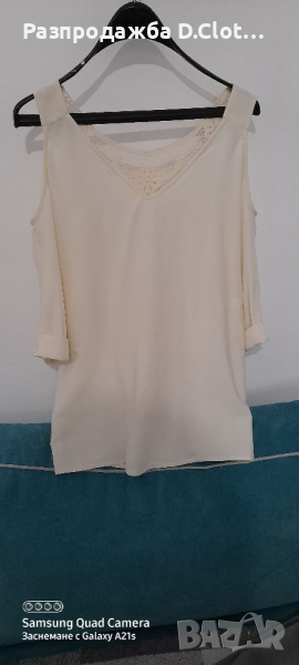 Отговаря на S/М размер, с паднали рамене,модела е по свободен и не стои по тялото.С красива дантела отзад.Без забележки.