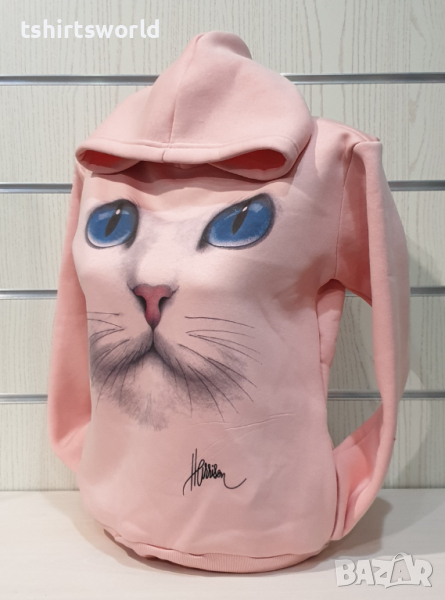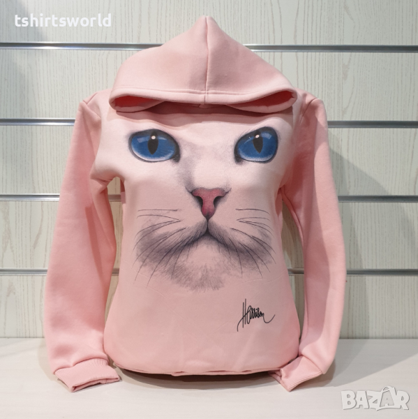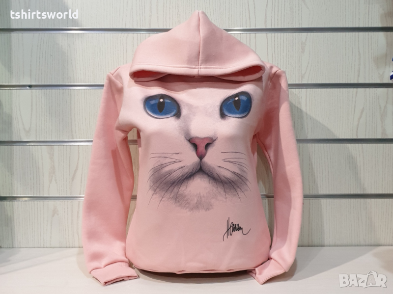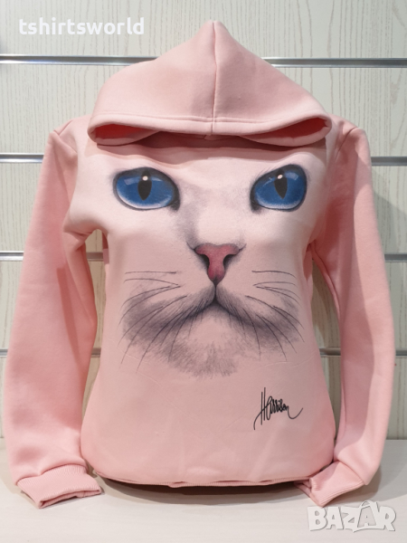 Нов дамски розов суичър с 3D принт Котка със сини очи