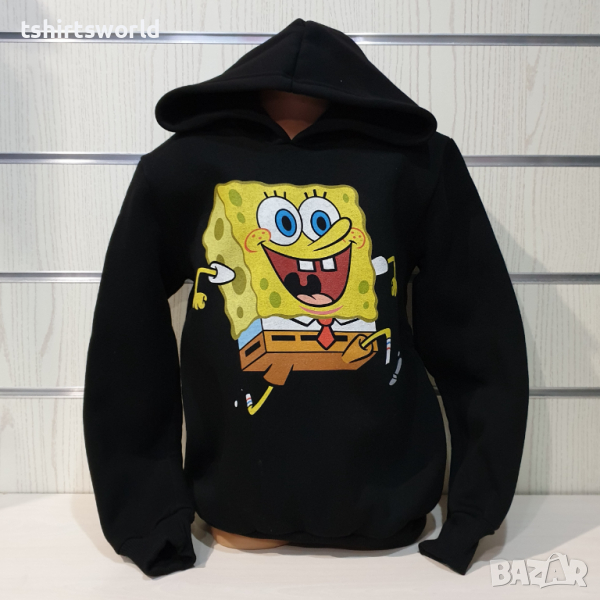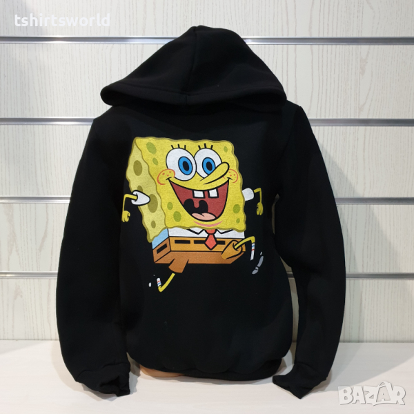 Нов детски суичър с дигитален печат Спондж боб в черен цвят