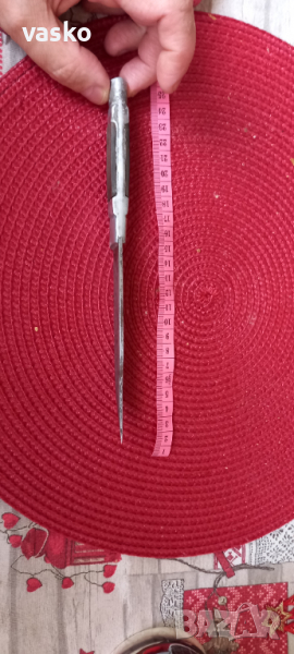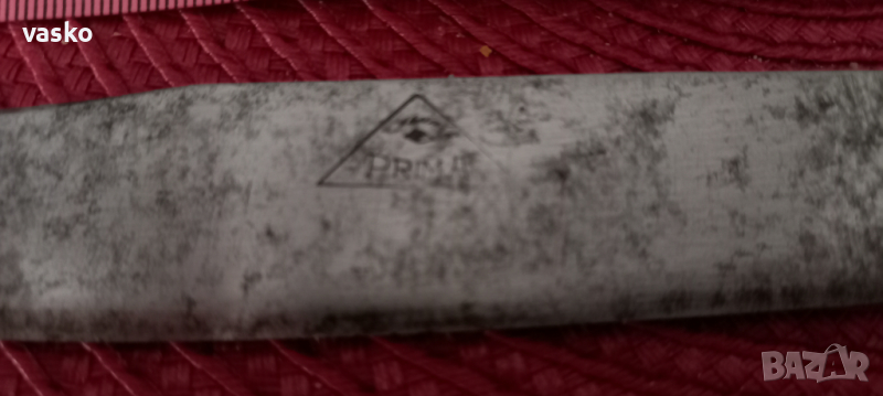 Продавам ножа от снимкиге-стар,Германски нож според мен е някъде между първата и втората световни войни.Дебелина на острието при дръжката около 2,8мм,уникална стомана-много остър и корав,острието не мърда.Дръжката е алуминий с дървени чирени.Маркировка PRIMA.Уникално ножче-здраво и много остро.Без кания.Оригинален вид.