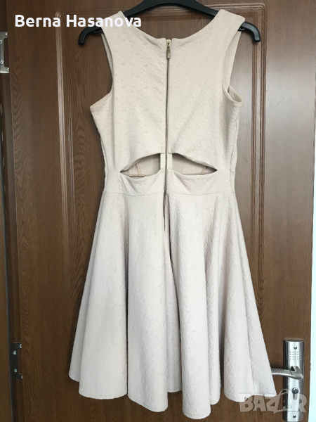Бежова елегантна рокля, носена 2-3 пъти, без забележки с изрязан гръб и цип отзад.