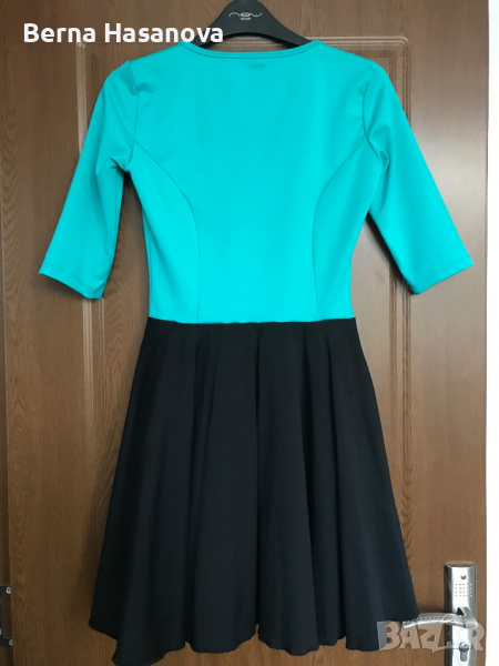 Синьо- зелена официална рокля, изпозвана веднъж, с оформяща подплата.