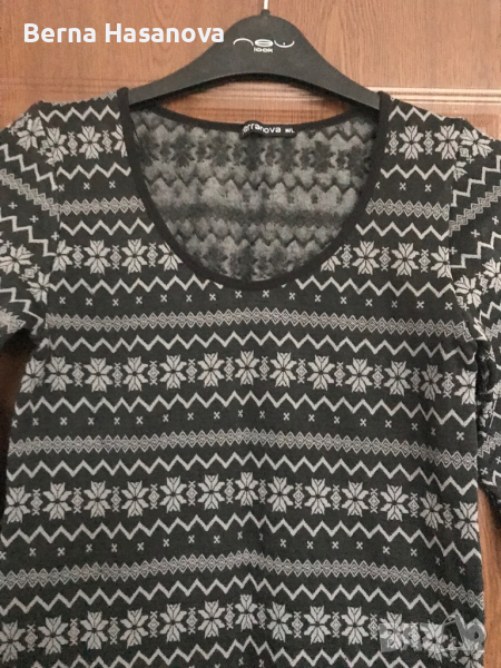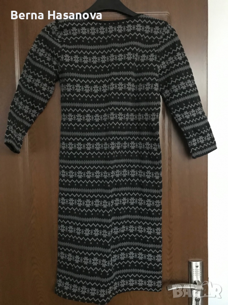 Прилепнала зимна рокля с мотиви, ватирана, използвана 2-3 пъти, без забележки, купена е от Terranova, размер M-L.
