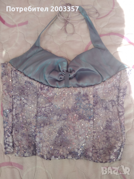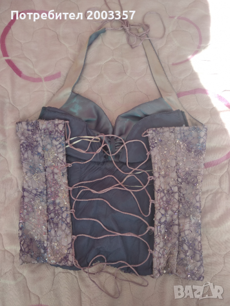 Бална рокля като нова носена веднъж за няколко часа, от две части - пола и корсет. Корсета е с гол гръб и може да се регулира.