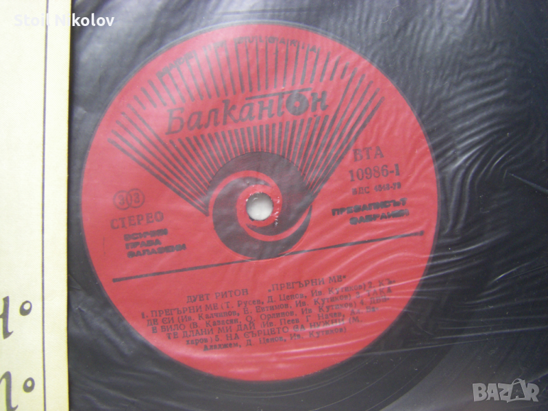 Грамофонна плоча - ВТА 10986 - Дует Ритон. Прегърни ме
