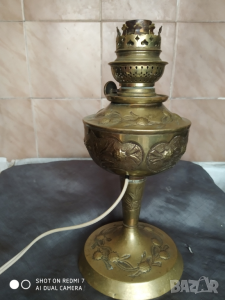 стара настолна лампа.месингов корпус,преправена от газова,байонетна фасунга.внос от франция.продава се без крушката.