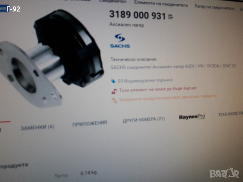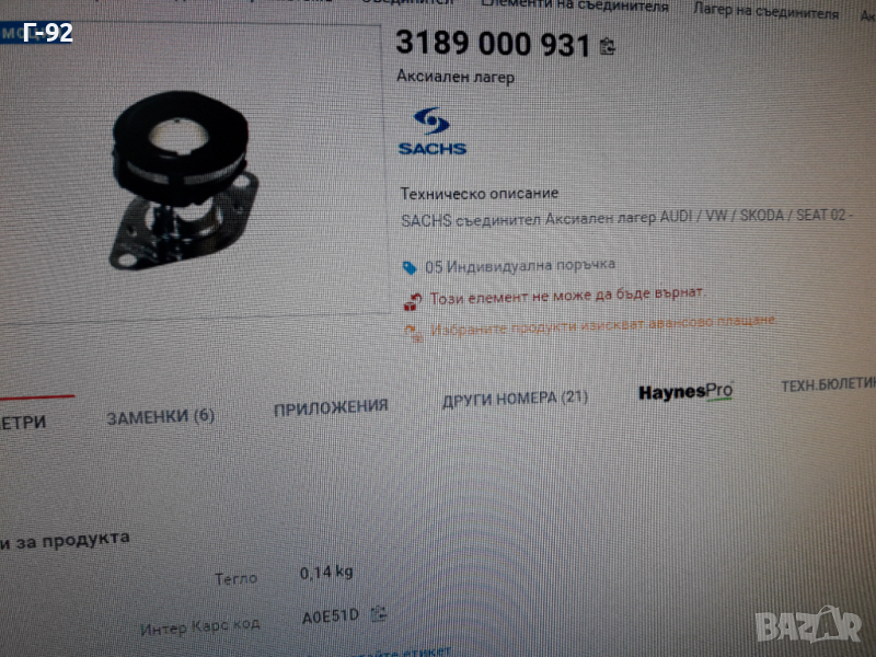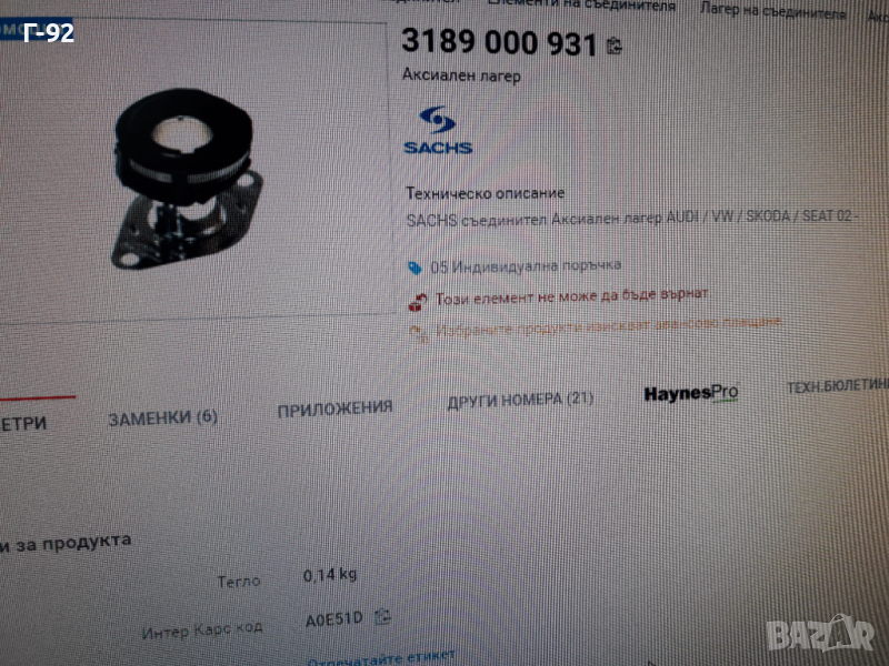 3189000931**NEU**SACHS**VAG**АКСИАЛЕН ЛАГЕР **СЪЕДИНИТЕЛ**