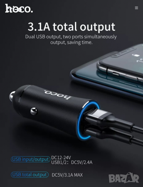 Hoco Универсално двойно USB зарядно за автомобил 5V/3.1A