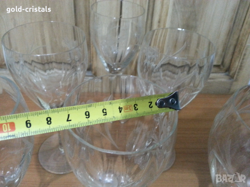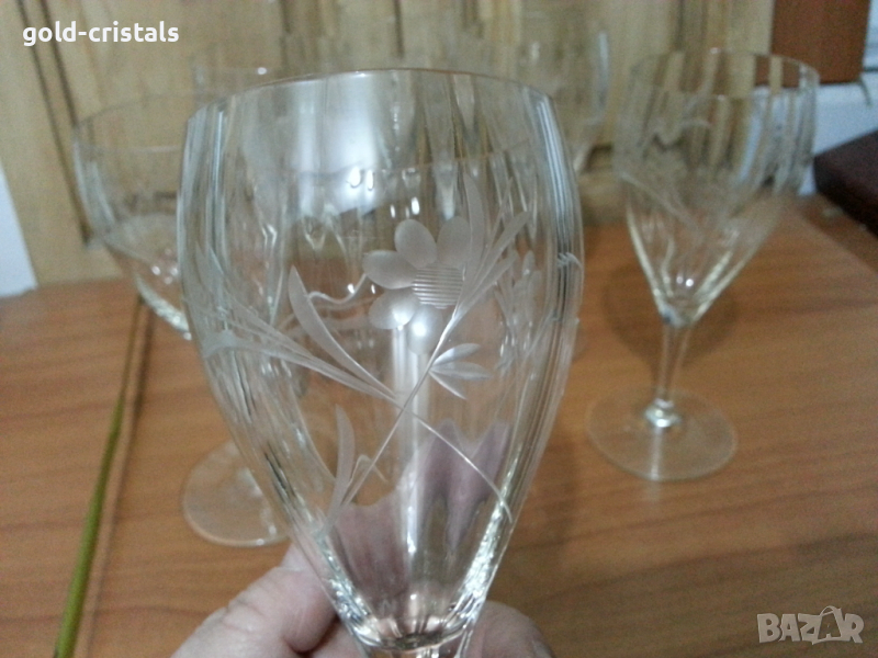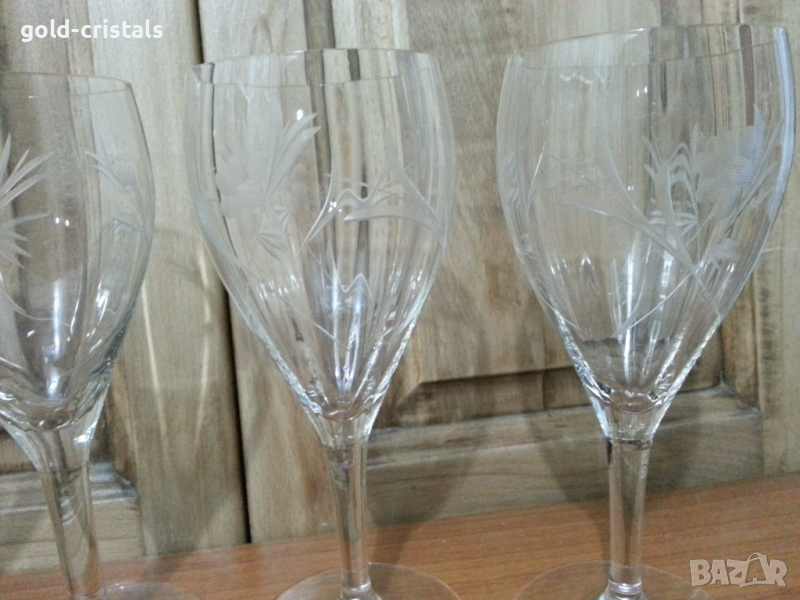 Ретро кристални чаши с художествена ръчна гравюра 6 бр -179лв 5бр-120лв за вино високи 19см вместимост 200мл без забележки неизползвани сервиз комплект сет лот ретро арт декор винтидж колекция стари антикварни предмети обзавеждане за дома и семейството подходящи за подарък за ценители и колекционери