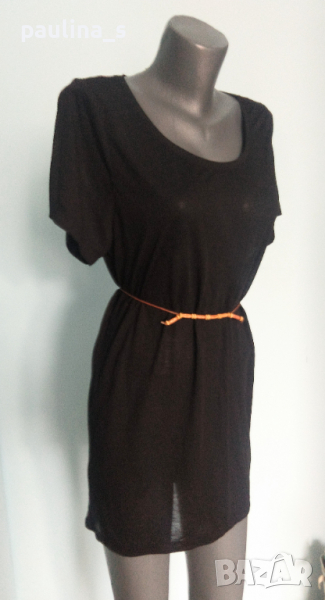 1️⃣. Колаж / L / 3XL - "H&M". Цената е 14,99лв / 7,5 евро. Памучна маркова рокля / туника с къс ръкав и О-образно деколте, коланът е примерен, за да се види как стои с колан(цената му е 4,99лв / 2,5 евро), има памучни гайки. Задната част е леко издължена. Материята е еластична и покрива няколко размера. Без дефекти, една бройка, като нова.