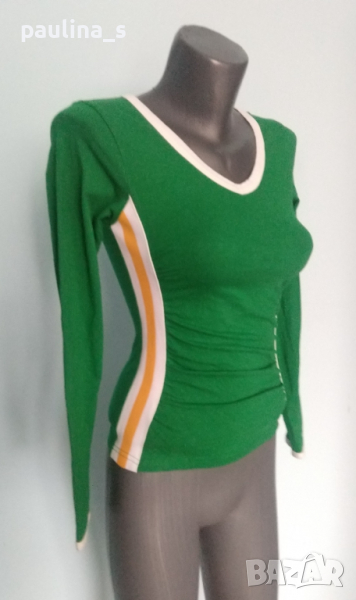 1️⃣ . M / 2XL "Kenvelo". Зелена маркова термо / спорна блуза в зелено. Цената е крайна 12 евро . Материята е памук и ликра, лентите в страни са много здрави, държат набора на предната. Не е нова, но е без дефекти.