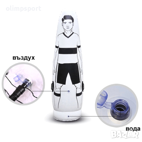 Гъвкава, за да понася удари с топка без да пада. Разполага с две секции - горната е предназначена за пълнене с въздух, долната е предназначена за пълнене с вода (което придава стабилност на фигурата). Материал - PVC. Тегло фигура - 1.9 кг. Височина - 170 см. Широчина - 50 см.