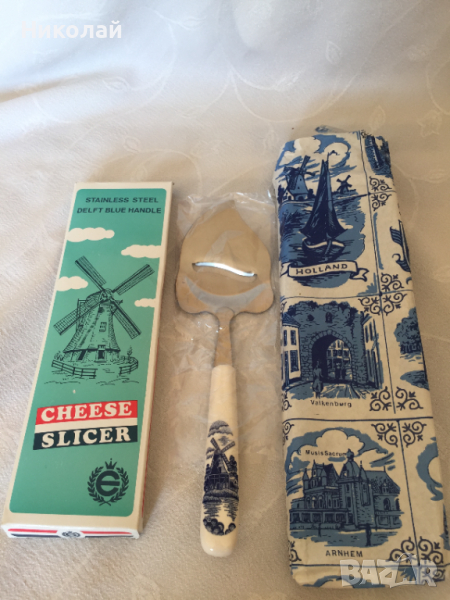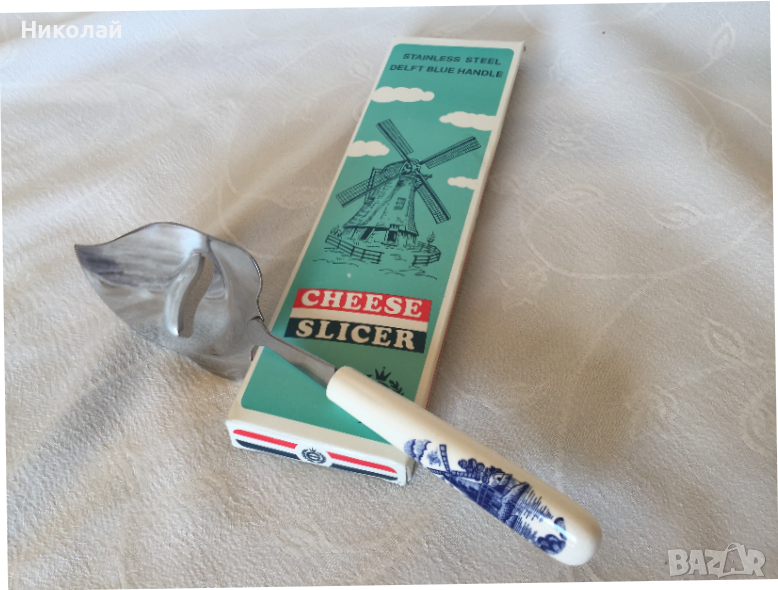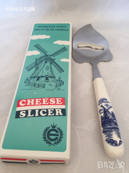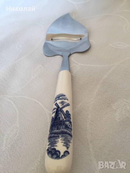 Нож / слайсер/ шпатула за сирене с керамична дръжка Elesva Delft blue, неръждаема стомана, нов → Обява 36166690