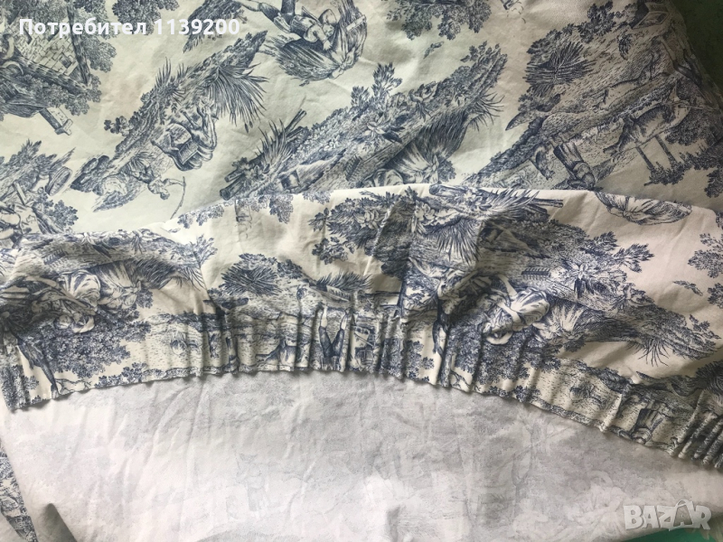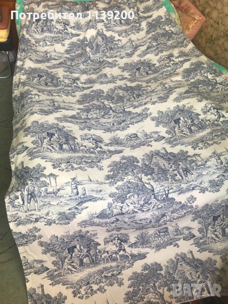 Френско перде Toile de Jouy сцени от селски живот бяло и синьо 100% памук → Обява 36170129