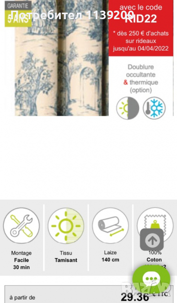 Автентично френско перде Toile de Jouy 245x130см