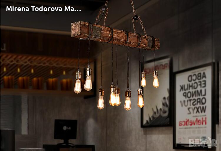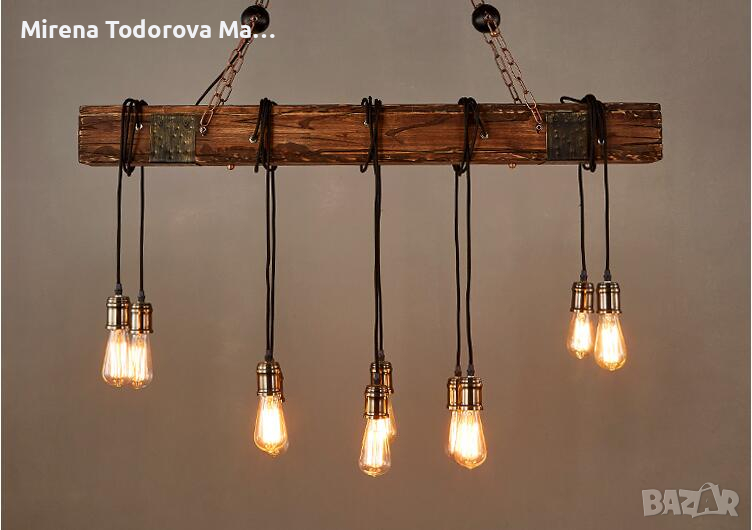 6глави дървена винтидж лампа Лофт стил Индустриални висящи