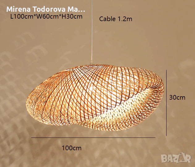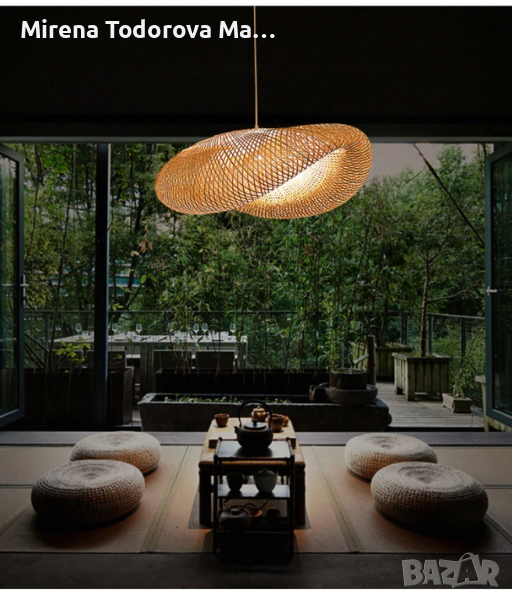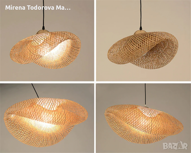 Винтидж висяща лампа полилей ретро индустриална естествен бамбук ратан