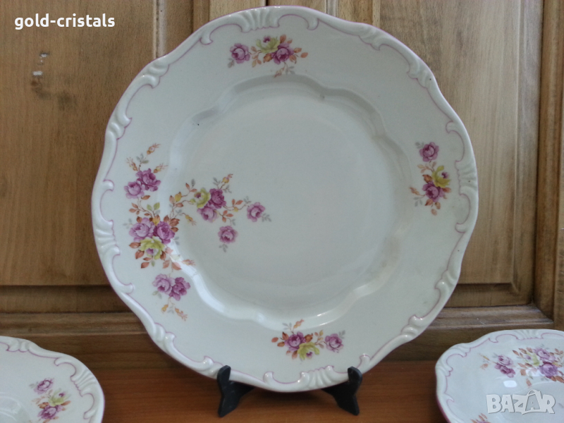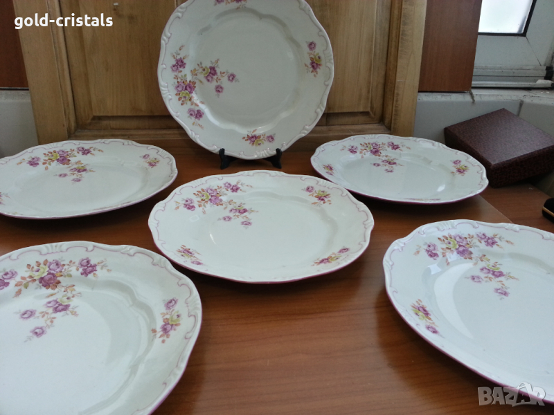 Стар порцелан бароков релеф чинии плитки за основно 6бр-239лв без чукнато и пукнато една чиния има фабрична точица отдолу сервиз комплект сет лот ретро арт декор винтидж колекция стари антикварни предмети обзавеждане за дома и семейството подходящи за подарък за ценители и колекционери