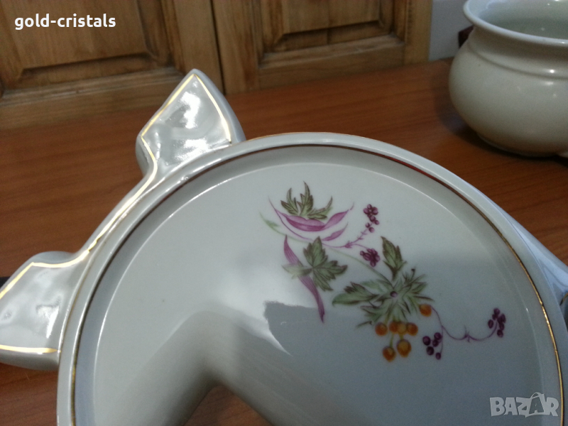 Стар български порцелан бъклица бърдук шарка липа капачето е с забележка идеален златен кант ретро арт декор винтидж колекция стари антикварни предмети обзавеждане за дома и семейството