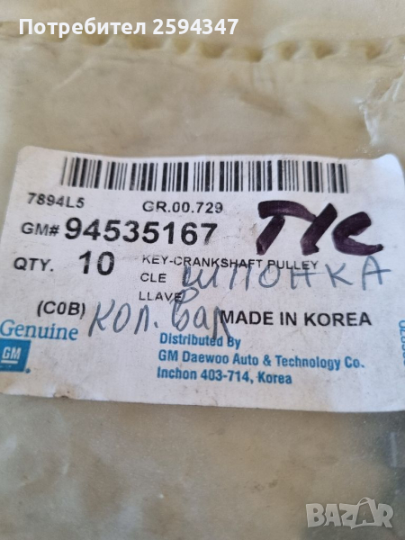 CHEVROLET KALOS AVEO SPARK ШПОНКА КОЛЯНОВ ВАЛ GM → Обява 36182601