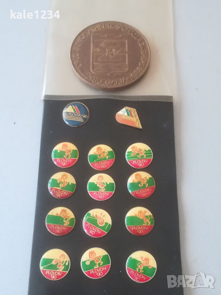 PLOVDIV 90. Спортни значки. Пловдив 90. Медал. Световно първенство. Лот. Колекция.