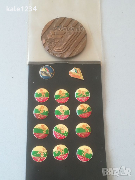 PLOVDIV 90. Спортни значки. Пловдив 90. Медал. Световно първенство. Лот. Колекция. → Обява 36183013