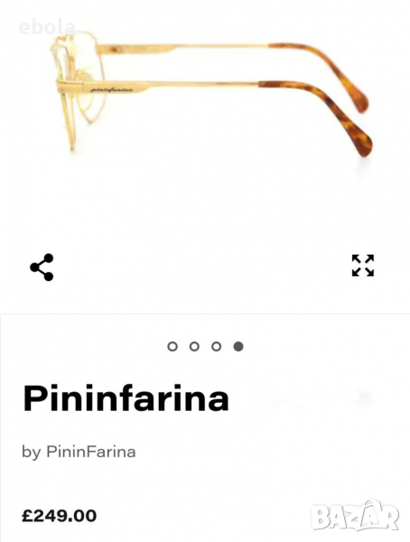 Очилата са оригинални и се продават за рамки. Без никакви забележки - съчетание близко до ново. Pininfarina е наемана през годините от много автомобилни производители да проектира дизайна на автомобилите им. Някои от тези фирми са дългосрочни клиенти, като Ferrari, Alfa Romeo, Peugeot, Fiat, GM, Lancia и Maserati