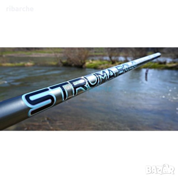 Нов модел за 2023г с нова серия издължени и леки Японски водачи Fuji Faz Lite K - Guides , които заменят старата серия и предотвратяват залепване на влакното по бланкта , разработен специално за условията на риболов по реките у нас .TICA Struma е изработена от висококачественa T40 Toray карбонова бланка със SLEEK SURFACE повърхност, свеждаща до минимум вероятността за залепване на влакното към бланката при дъжд и влага, произведена в Япония. Въдицата е оборудвана с водачи FUJI Fazlite, произведени в Япония, и олекотен макародържач. Многократно сме имали запитвания от клиенти за въдицa, която да обединява предимствата на петметровите и шестметровите болота. Вдицата е със ниско тегло(203г), доста изпънат и стегнат строй и в това отношение прилича на петметрова болонеза. От друга страна, с реална дължина от 550см, въдицата е по-близка до шестметровите болонези, които според марките са с дължина в диапазона между 580см до 590см. Това позволява да се изтича на места, на които риболова с петметрова въдица е труден или невъзможен. Благодарение на факта, че въдицата е от пет части, а не от 6, както би била всяка шестметрова болонеза, строят и е изключително стегнат.