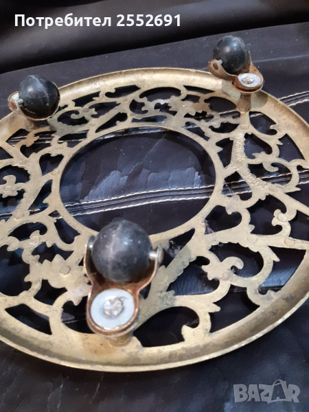 2 броя метални /месингови/ ажурни поставки с колелца. МADE IN TAIVAN . Диаметър- 28см. Цената е за един брой. Двете- 80лв.