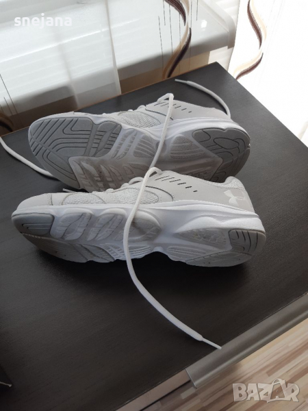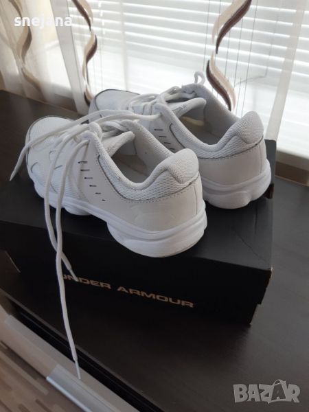 Оригинални дамски маратонки Under Armour, обувани веднъж във фитнеса от дъщерята,на практика нови , отговарят си на номера. Стелка 24см. Цената не я коментирам.