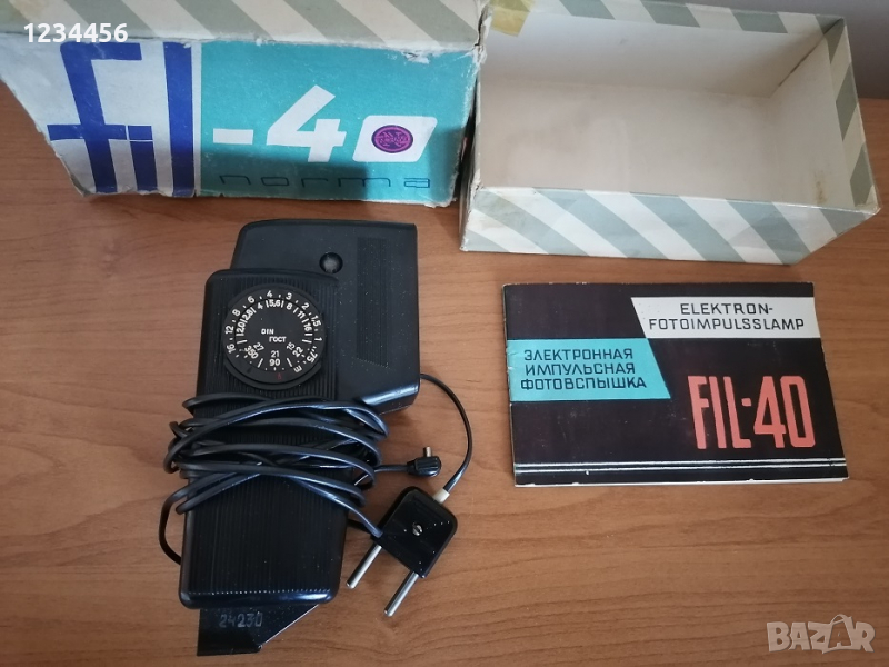 Електронна импулсна фотосветкавица FIL-40 (универсална работи с всеки фотоапарат), нова, не е ползвана, Талин, Естония, 1966г., с упътване в ориг. кутия.
