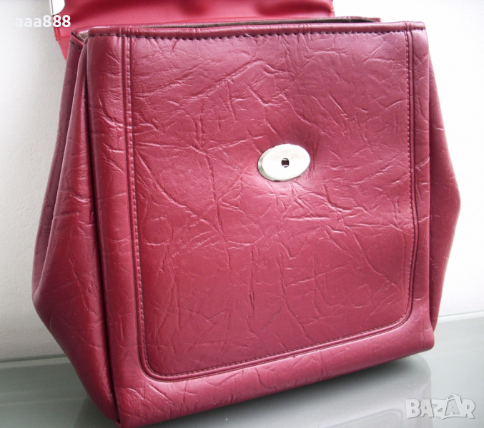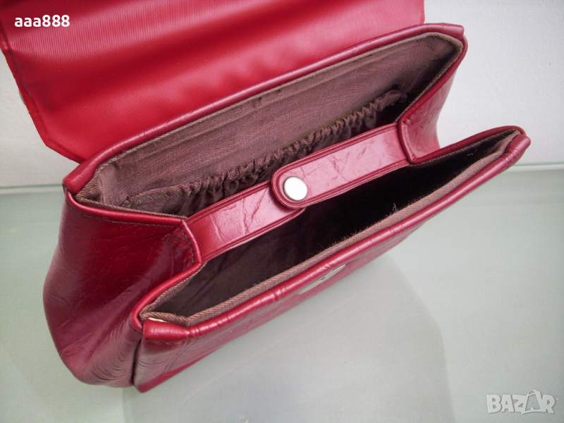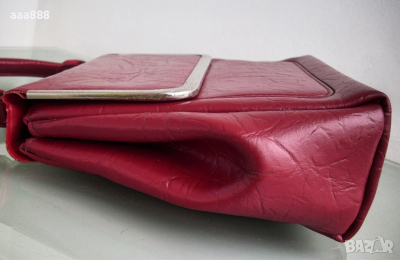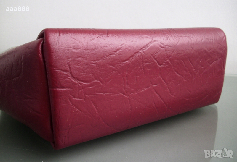 Дамска чанта от шагренирана еко кожа цвят бордо. Произведена в Ленинград през соц.епохата. Никога не е употребявана. Безупречна, без забележки.