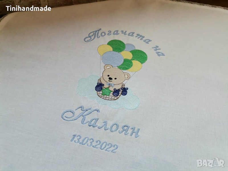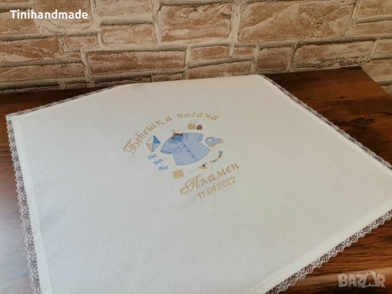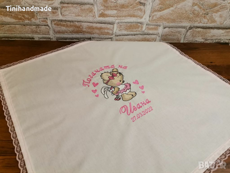Изработваме по поръчка платно за бебешка погача. Размер 50 х 50 см. Изработено от 100% памук.
