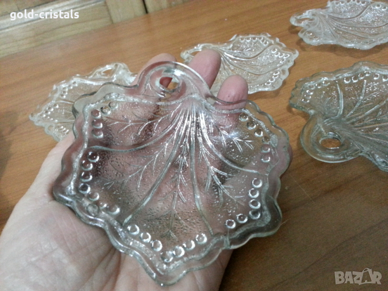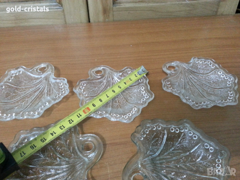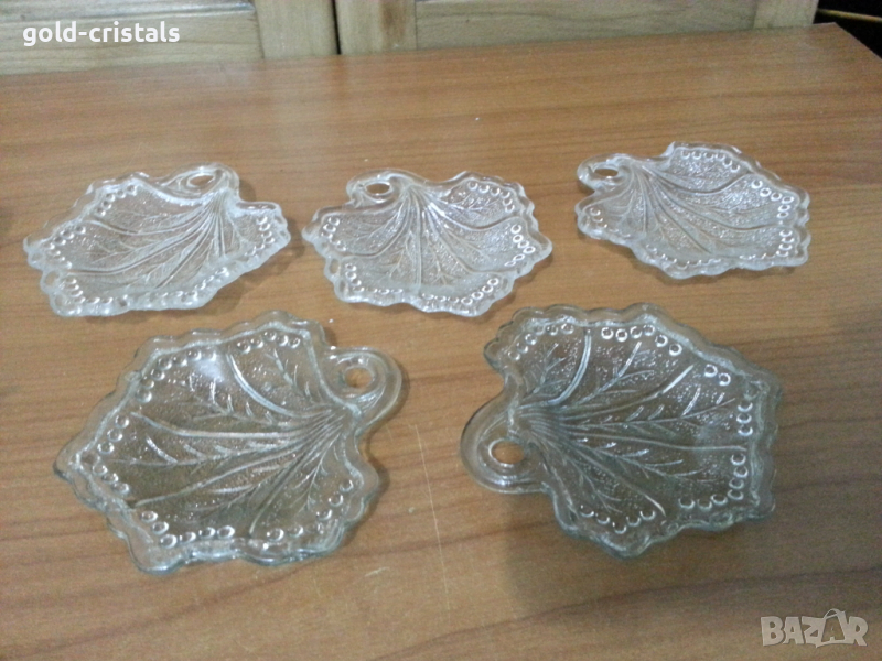 Стари стъклени чинийки с форма на листо 6бр -30€ 5 бр-25€ много редки сервиз комплект сет лот ретро арт декор винтидж колекция стари антикварни предмети обзавеждане за дома и семейството подходящи за подарък за ценители и колекционери стъклени кристални чинии купички сервиране хранене гости трапезария маса празници подарък кухня за сладко десерт