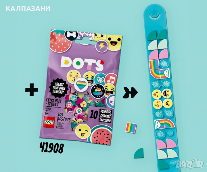 Готови ли сте да развихрите творчеството си? Разгледайте шарената гривна с цветовете на дъгата и си направете собствено невероятно бижу! Поставете небесносинята гривна легнала хоризонтално и закрепете разноцветните плочки. Използвайте опаковката за вдъхновение или си измислете собствен забавен модел. След това добавете плочките с щампи в цветовете на дъгата за допълнителен стил, преди да закопчаете страхотната гривна на китката си. Украсявайте повторно гривната, както ви харесва!